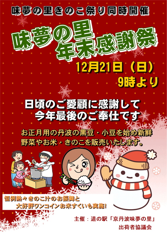 きのこ汁の振舞とワンコインでお米すくいも楽しんでいただけますよ!